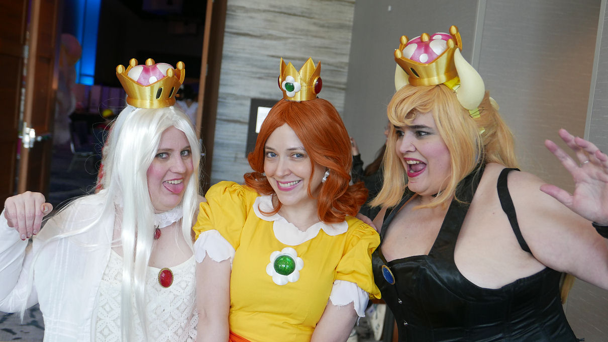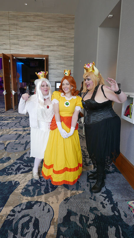I chose Patti and Steph to make this costume for me because they had previously done a Princess Peach costume for our friend Fitz that came out wonderfully, and sure enough they delivered. The dress, the crown, the earrings, the broach, and even the gloves were all made by them. All I did was buy a pair of blue contacts and wad up my Lydia tulle veil to give myself a bit of padding in the hips, and I was ready to go!