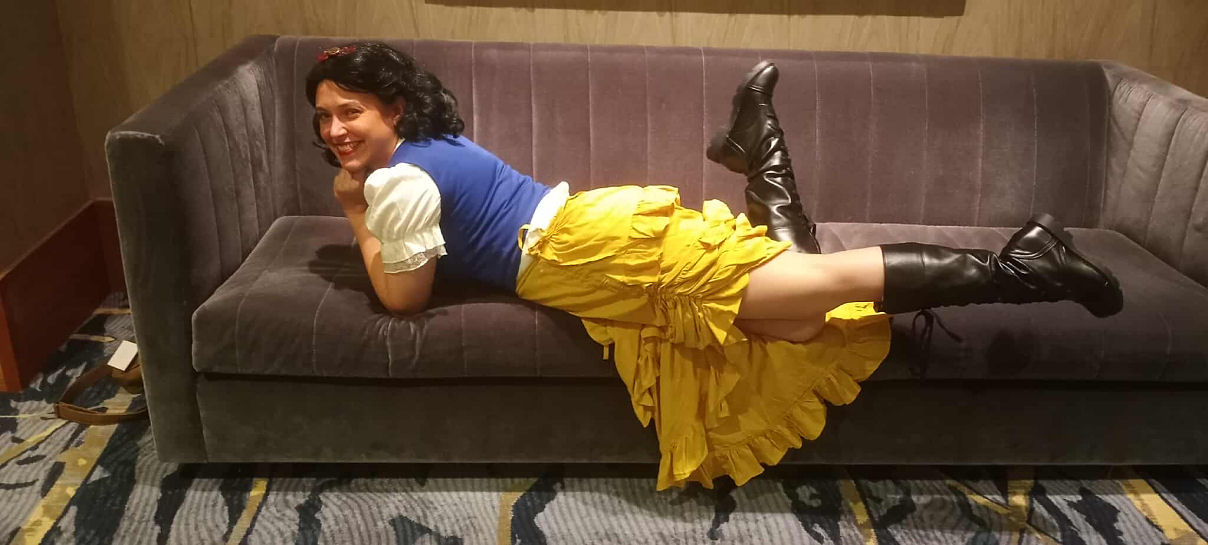 If I'm recalling correctly, this came about one day when I was redesigning BS&G to give my Ren Faire dresses their own section, and I realized that certain characters had been crossed multiple genres. Sailor Mars has a classic version (so...so many classic versions), a Steampunk version, a Ren Faire version, and even a Lolita version (I hadn't bought that dress with Rei in mind, but I wore it with other Senshi Lolita, so it counts.) Batgirl has a classic version and a Steampunk version. Snow White had a classic version, a Ren Faire version, *and* a Lolita version...why not do a steampunk version? It would be easy; nothing would have to be commissioned, and she's got a very iconic color scheme which makes her easy to recognize. I didn't even know when I'd get a chance to wear it, but hey, retail therapy, am I right?